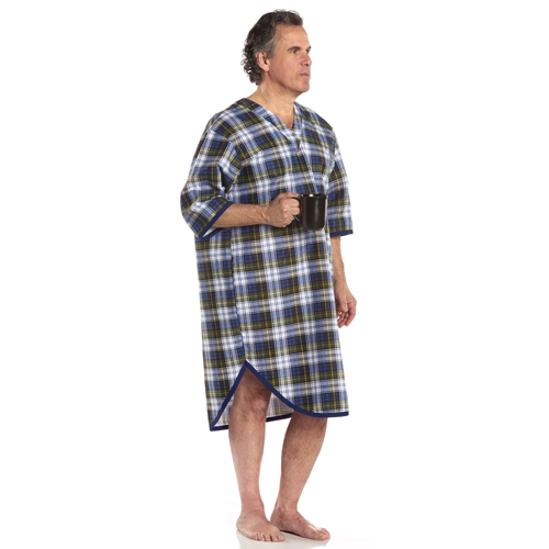 Sleep Shirt Patient Gown-men Large-extra Large Blue Plaid