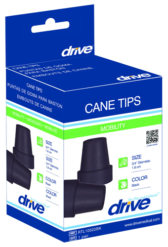 / Cane Tips For 1 Cane Diameter Black (pair) Retail Box
